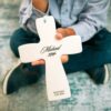 This lovely round keepsake box would be a perfect godchild gift and is one that can be enjoyed all year round. It’s made of earthenware clay and can have the child’s name printed on top of it with a little cross, anchor, olive branch, shamrock, or star image. This box makes a thoughtful and personalized baptism gift.